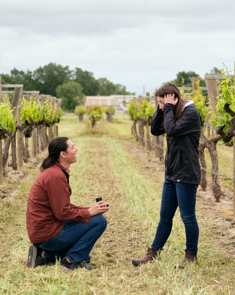 But that did not deter us. Chris wanted to surprise Ellie by popping the question at the vineyard in Davis, California, where they had their first date. He's quite the romantic. Of course, I was excited to shoot! I love these moments. I'm not going to lie, I was nervous as well. I didn't want to mess it up. It's not like can ask them to to reshoot this kind of thing.